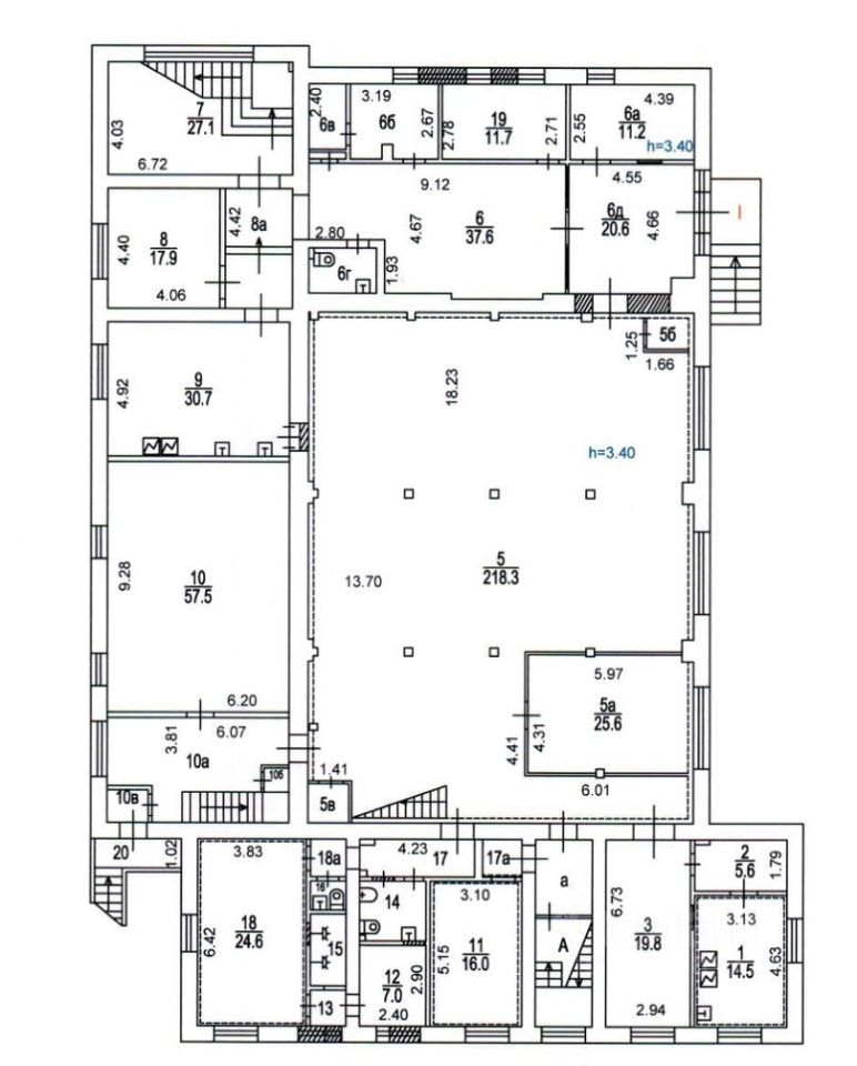 Смешенная планировка (зальная, офисная). Два независимых входа, без пересечений. Можно разделить на две локальные зоны.