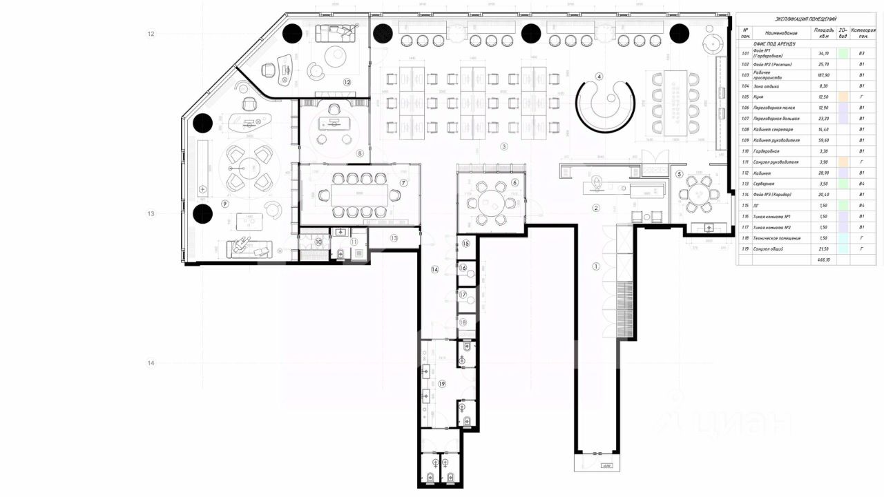 1130736. Предлагаем офисное помещение площадью 448.2 кв. м, расположенное на 20 этаже БЦ "ICITY"
