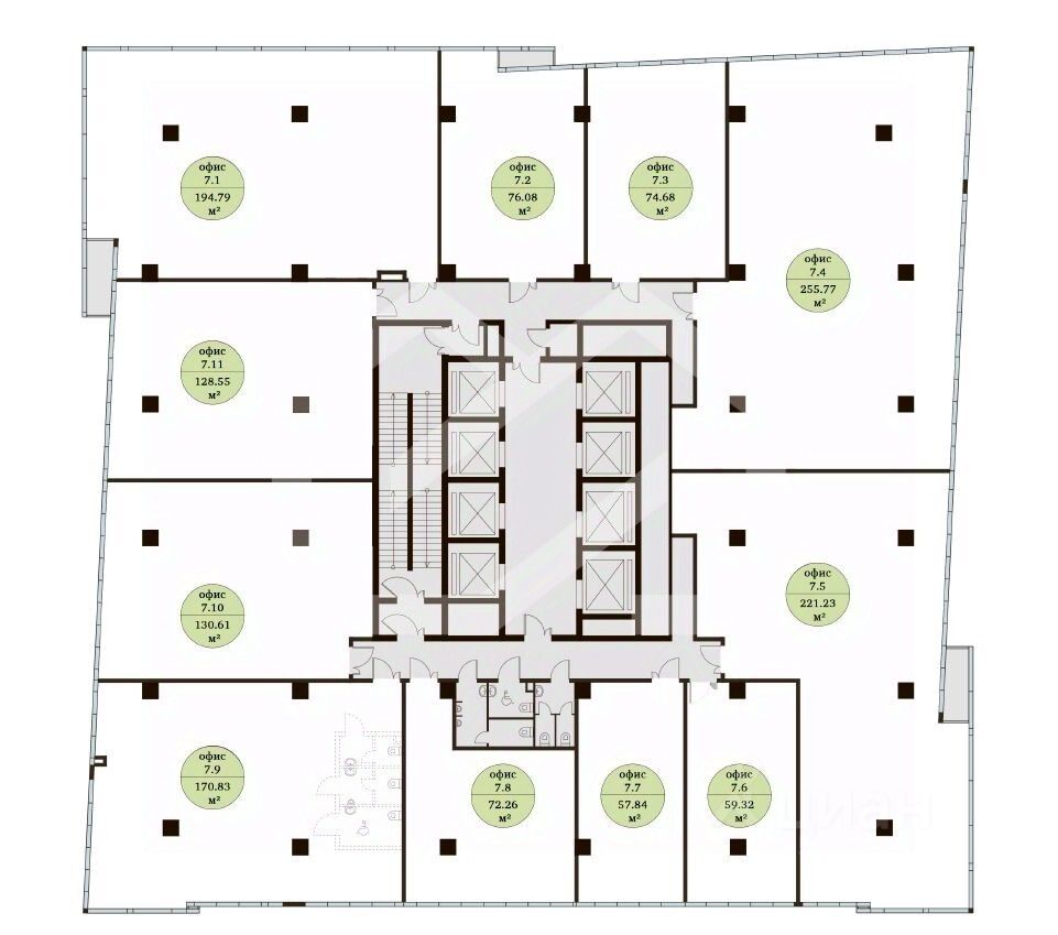 1107517. Предлагаем офисное помещение площадью 255,77 кв. м, расположенное на 7 этаже нового строящегося бизнес-центра "Цетлин"