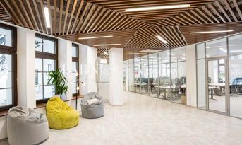 Имеются два независимых входа, через один из них организован доступ в зону руководства. Закрытые кабинеты и зоны open space, уютные переговорные, библиотека, зоны релаксации и приема пищи. В отдельную серверную заведена оптико-волоконная линия, обеспечивающая высокоскоростной интернет.