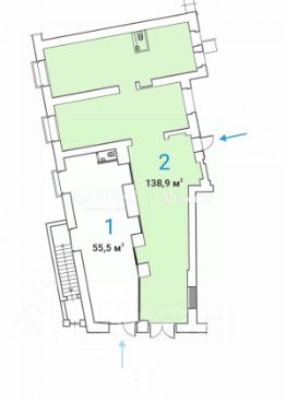Помещение находится на 1 этаже жилого дома, имеет общую площадь - 138,9 кв.м. и открытую планировку. Витринные окна, потолки - 4,2 м, высокий рекламный потенциал и возможность размещения вывесок. Есть как отдельная входная группа с фасада, так и вход с торца.