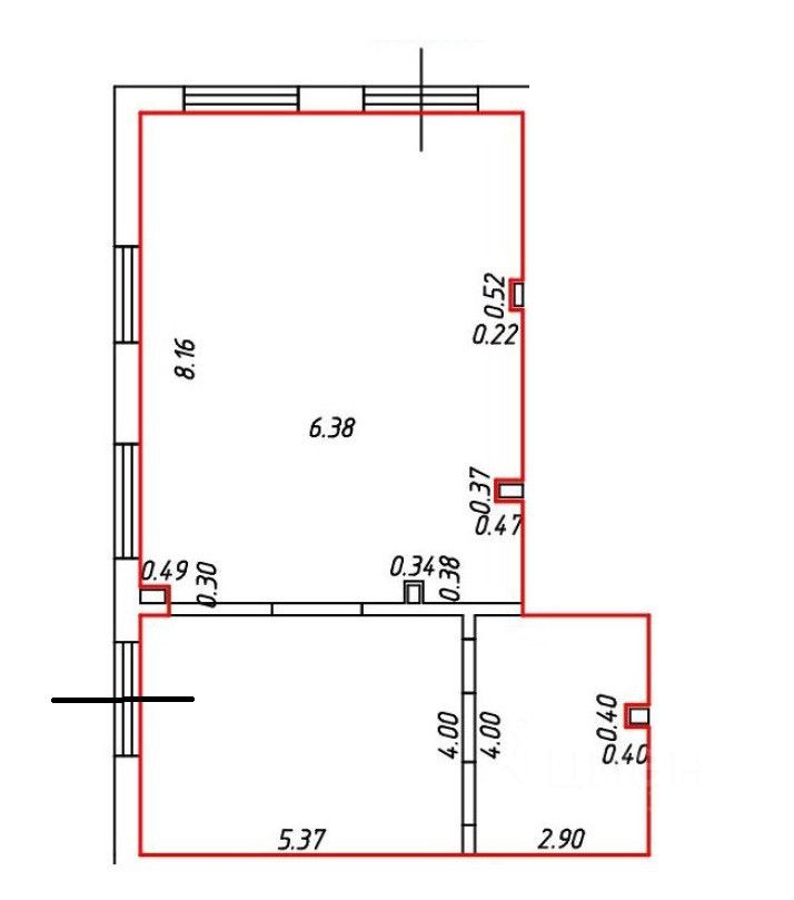 В помещении две входные группы, большие витрины, свободная планировка, все коммуникации центральные, мощность - 33 кВт.