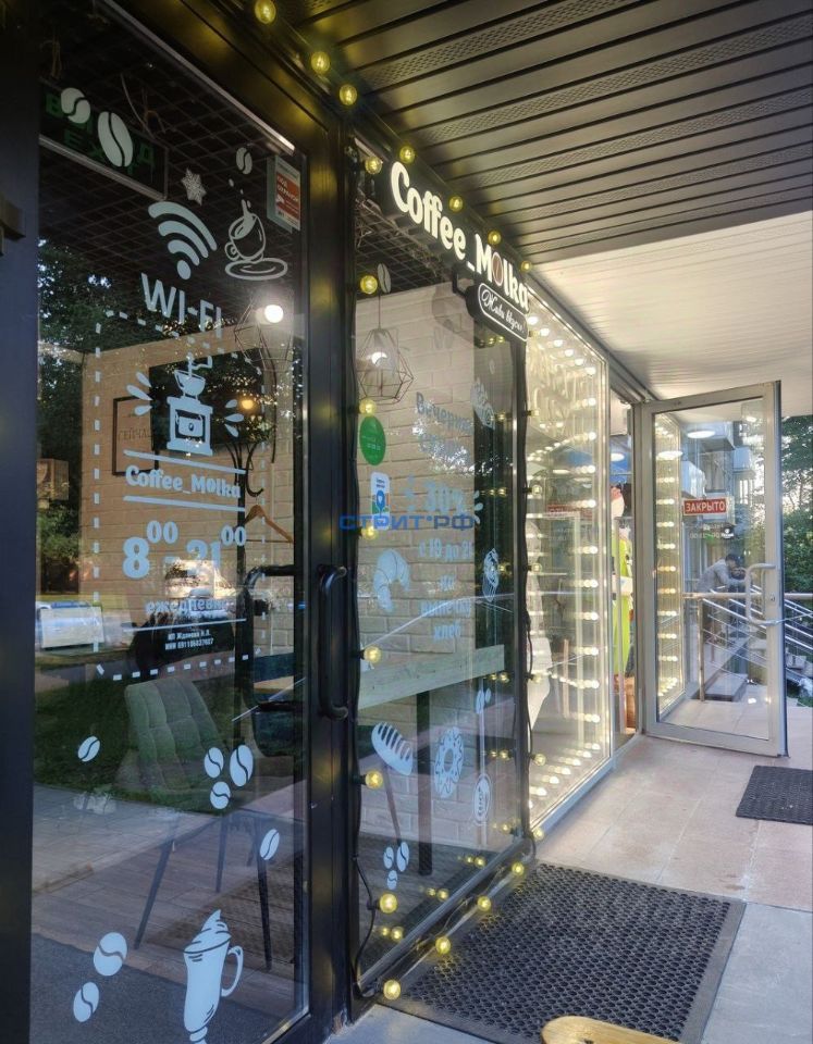 Хорошо просматривается со стороны пешеходного трафика в соседние здания;