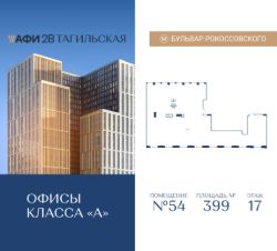 Продается коммерческое помещение общей площадью 399 м2 на 17 этаже в строящемся бизнес-центре АФИ2В Тагильская.