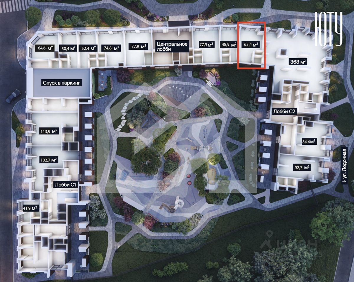 1000562. Предлагаем помещение свободного назначения в ЖК "ЮТУ", площадью 65.4 кв. м, расположенное на первом этаже 29-этажного жилого дома. Без комиссии для покупателя.