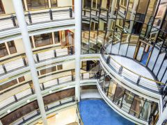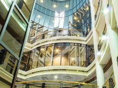 -в здании есть представительское лобби, просторный атриум, фитнес-зал и сауна, установлены панорамные лифты;