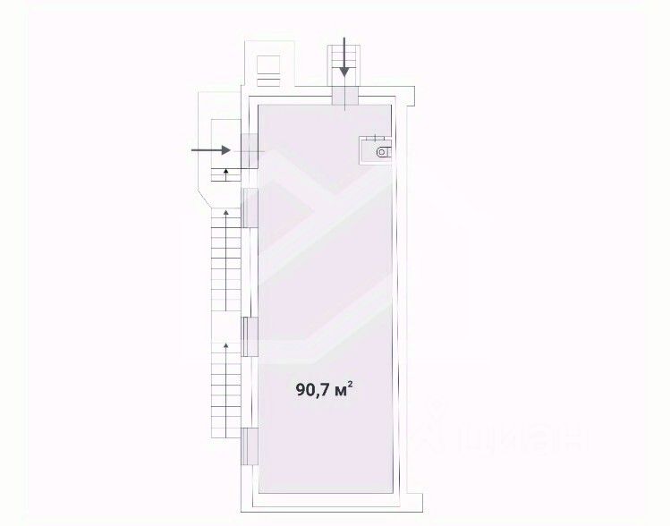 945009. Предлагаем к приобретению торговое помещение, площадью 90.7 кв. м, расположенное на первом этаже жилого дома. Без комиссии для покупателя.