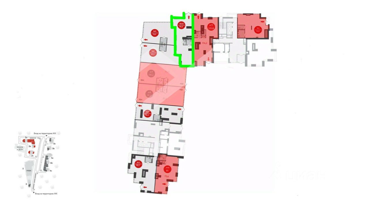 631516. Предлагаем к приобретению помещение свободного назначения, площадью 96,8 кв. м., расположенное на первом этаже жилого дома в ЖК Russian Design District. Корпус 2В. Без комиссии для покупателя.