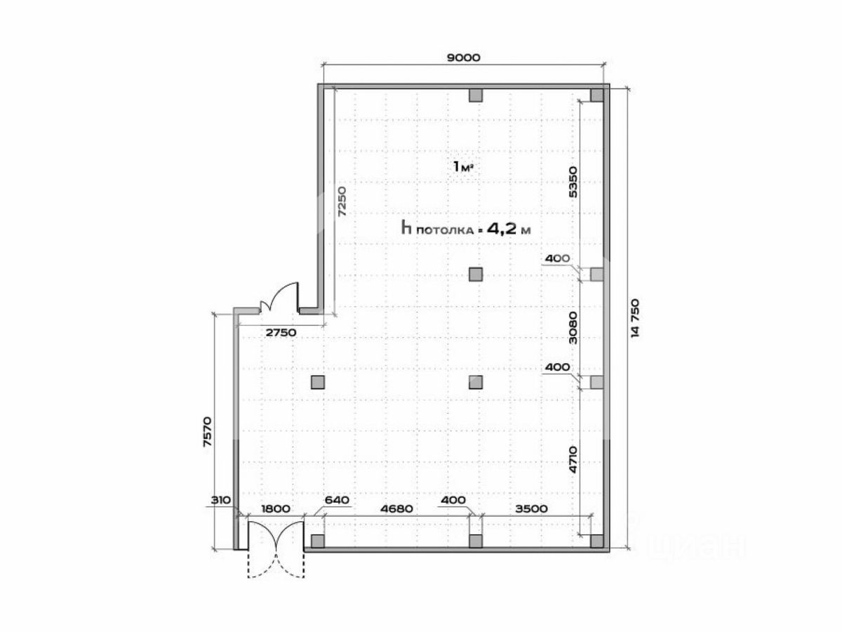 -высота потолков: 4.2 м.