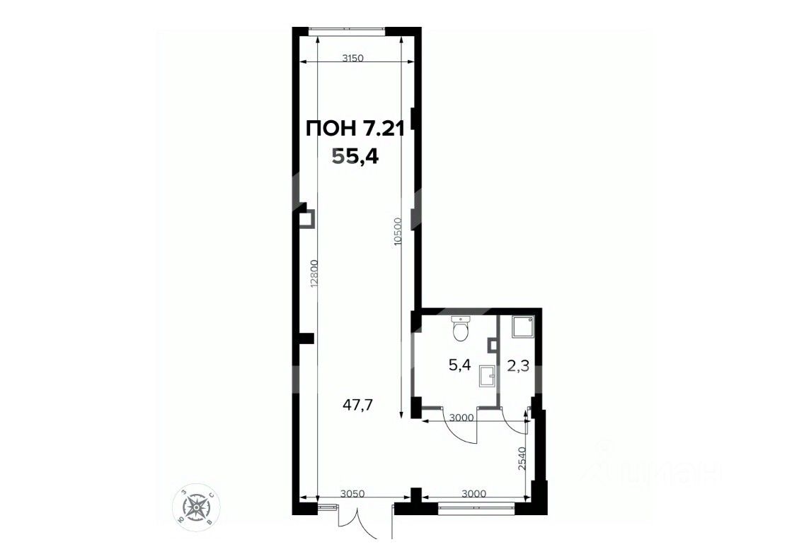 991437. Предлагаем помещение свободного назначения, площадью 55,3 кв. м., расположенное на первом этаже жилого дома в ЖК "1-й Ленинградский". Корпус 4. Без комиссии для покупателя.