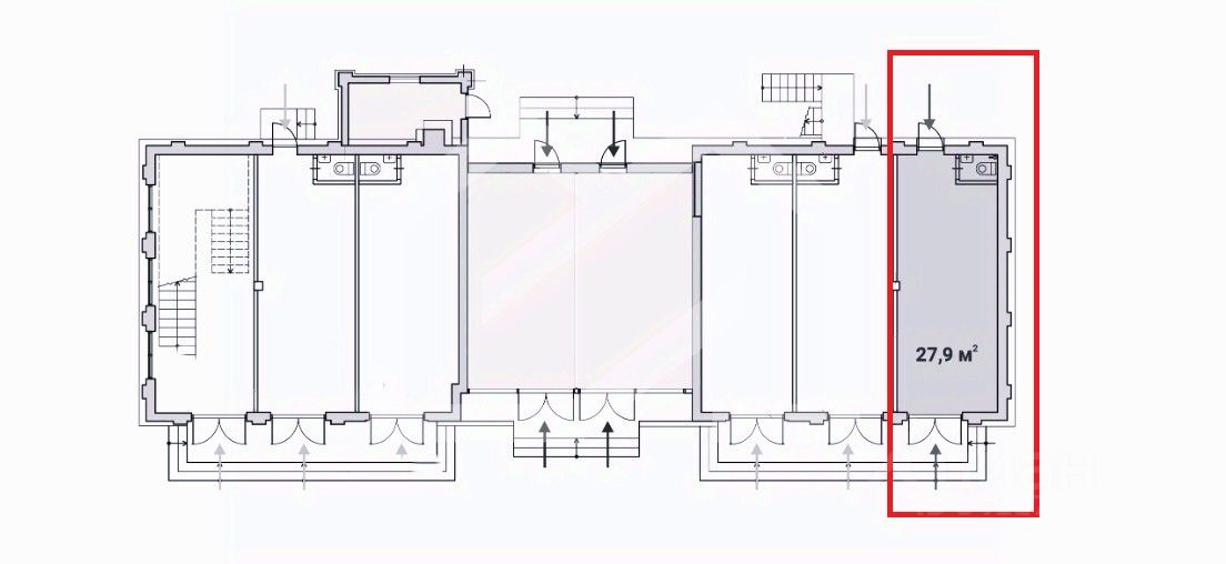 687065. Предлагаем к приобретению торговое помещение, площадью 27.9 кв. м., расположенное на первом этаже 2-этажного административного здания. Без комиссии для покупателя.