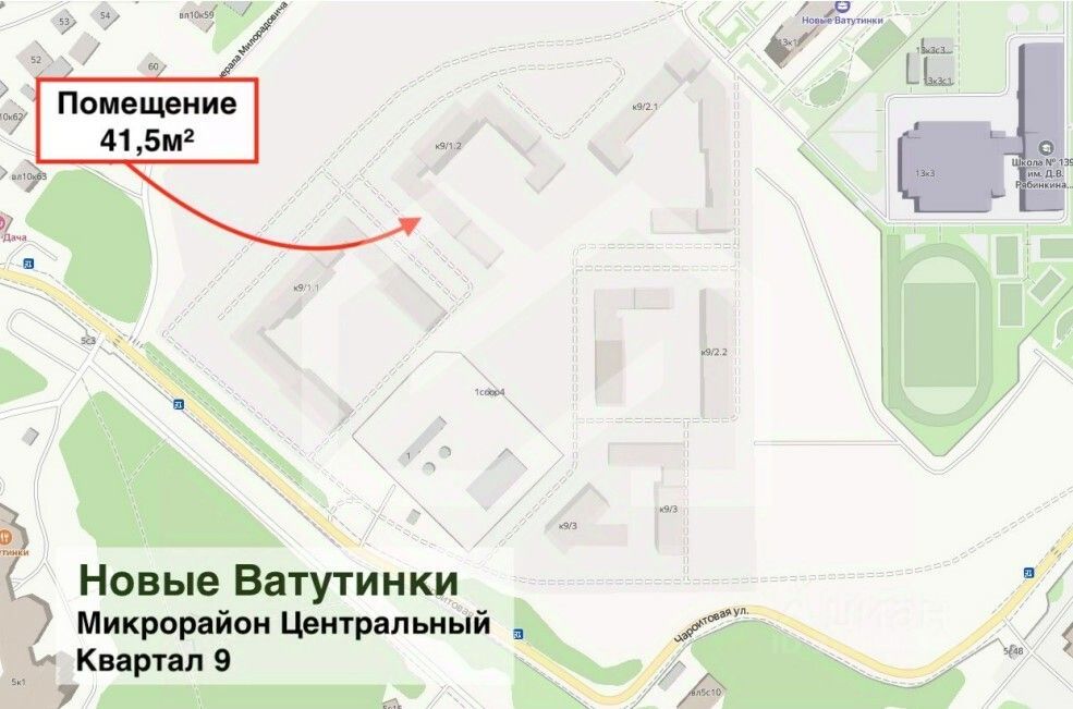 834320. Предлагаем помещение свободного назначения в ЖК "Новые Ватутинки мкр. Центральный", площадью 41.5 кв. м, расположенное на первом этаже 14-этажного жилого дома. Квартал 9. Без комиссии для покупателя.