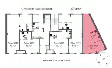 919012. Предлагаем помещение свободного назначения в ЖК "Лучи", корпус 15, площадью 59.1 кв. м, расположенное на первом этаже 24-этажного жилого дома. Так как корректный адрес отсутствует на Яндекс.Картах, введен ближайший. Без комиссии для покупателя.