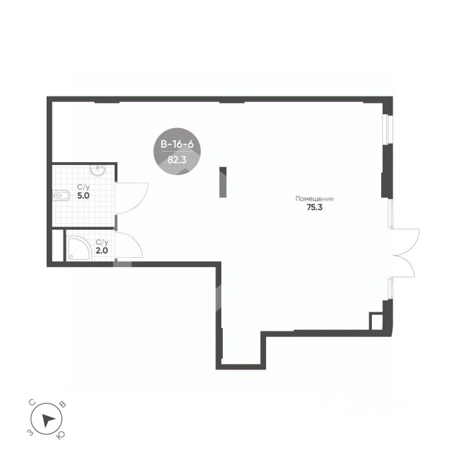 1110503. Предлагаем помещение свободного назначения в ЖК "Shagal", площадью 82.3 кв. м, расположенное на первом этаже 7-этажного жилого дома. 4 очередь, 2 этап, корпус 6. Без комиссии для покупателя.