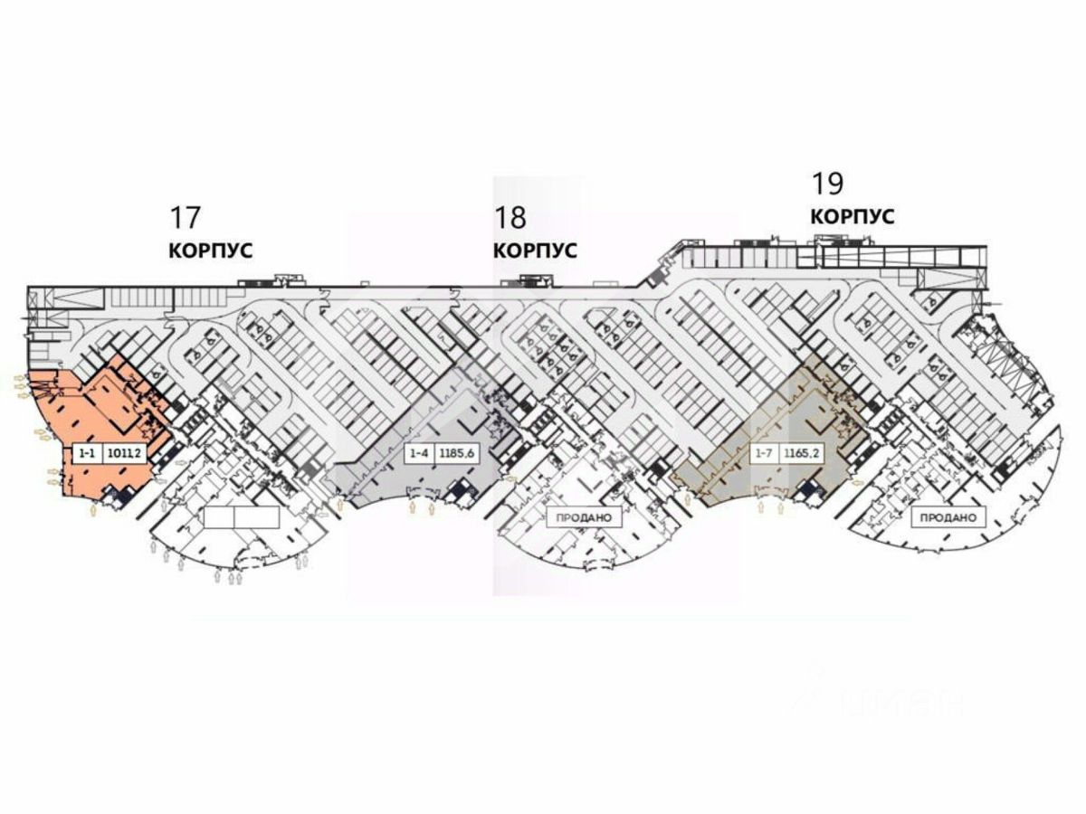 642192. Предлагаем к приобретению торговое помещение, площадью 1 011.2 кв. м., расположенное на первом этаже (стилобате) жилого дома в ЖК бизнес-класса "Фестиваль парк". Без комиссии для покупателя.