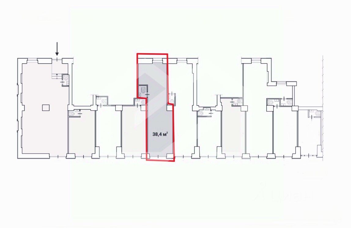 636159. Предлагаем помещение свободного назначения, площадью 38,4 кв. м, расположенное на первом этаже трехэтажного административного здания.