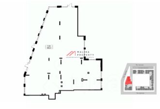 Помещение 484,4 м2 располагается на 1 этаже, открытая планировка, 3 отдельных входа с фасада, высота потолка 4,7 м, витринные окна по фасаду.