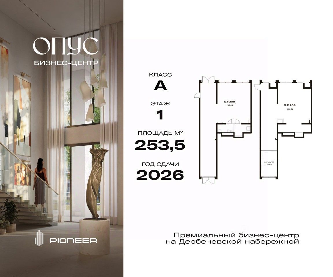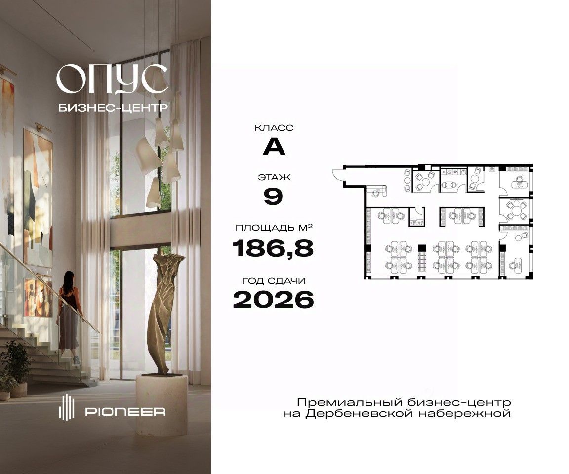 Опус станет первым за 15 лет офисным проектом А класса, расположенным на первой линии Москвы-реки, в работе над которым работали архитектурное бюро Цимайло Ляшенко и Партнеры, а также дизайнер Наталья Белоногова. Эффективные планировки и зонирование пространства, максимальное количество естественного освещения, богатая инфраструктура и интерьеры обеспечивают абсолютную ликвидность и потенциал роста цены ко вводу в эксплуатацию более 40%. Важное преимущество Опус - оригинальное дизайнерское решение офисного двора: он будто парит на круглых камнях, застывших в толще льда. Парк станет местом отдыха для сотрудников, а также возьмет на себя роль зеленого транзита между бизнес-центром и улицей. Просторное, но камерное лобби выполнено в несвойственном для офисных пространств стиле и создает гармоничную атмосферу единения с природой. Чистые линии, натуральное дерево и мрамор, уютные зоны с камином, удобные премиальные диванные группы. Павелецкий деловой район - второй по величине кластер после "Москва-Сити" и один из самых востребованных, что подтверждается низким уровнем вакантных площадей в локации. Преимущества бизнес-центра Опус: - Потолки 3,8 м - 5 мин. от Садового кольца - Торговая инфраструктура 4 228 м2 - Видовые террасы на 13 этаже - Паркинг на 175 м/м - Продажа по ДДУ - Собственная УК Застройщик PIONEER — ключевой игрок рынка коммерческой недвижимости Москвы: 22 года на рынке, 31 проект в портфеле компании. 1 среди девелоперов офисной недвижимости по рейтингу РБК от 2021 года. "Девелопер года" по версии Workplace Awards 2023. Звоните, и мы с удовольствием расскажем все подробности о проекте!
