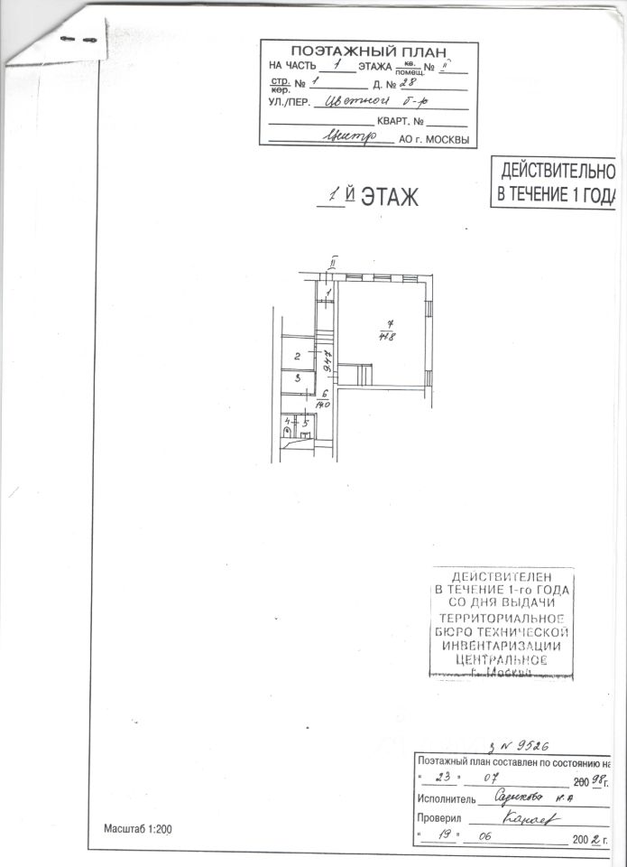 Продажа помещения свободного назначения на 1-м этаже офисно-жилого 4-х этажного дома на Цветном бульваре.