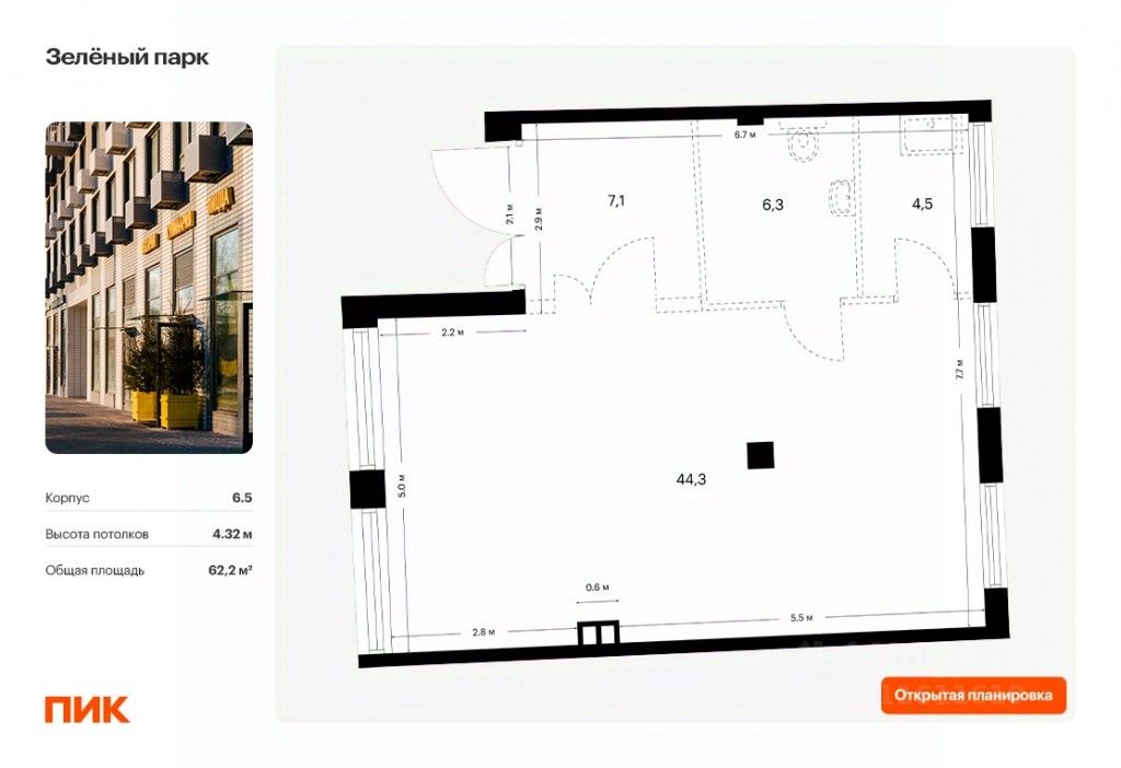 Продаётся нежилое помещение свободного назначения в новом жилом районе Зелёный парк от ПИК. Открытая планировка, витринное остекление, удобный вход на уровне земли. Помещение номер 24. Продажа напрямую от застройщика.