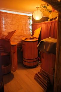 Планировка СПА салона: 2 кабинета для массажа с открывающимися окнами, 2 душевые кабины, сан.узел.