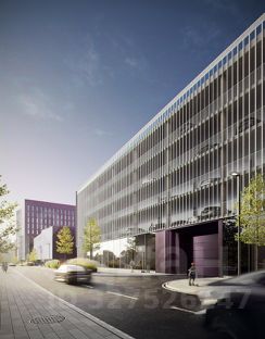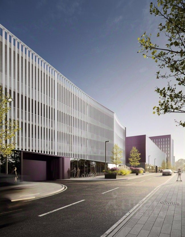 Собственная наземная многоуровневая парковка.