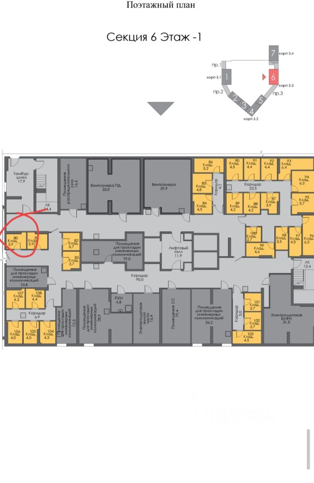Площадь 3,9 м, кладовка правильной формы с электричеством.