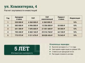 (Обратите внимание: указанная доходность рассчитана без учета ежегодной индексации платежей и естественного роста цены на саму недвижимость).