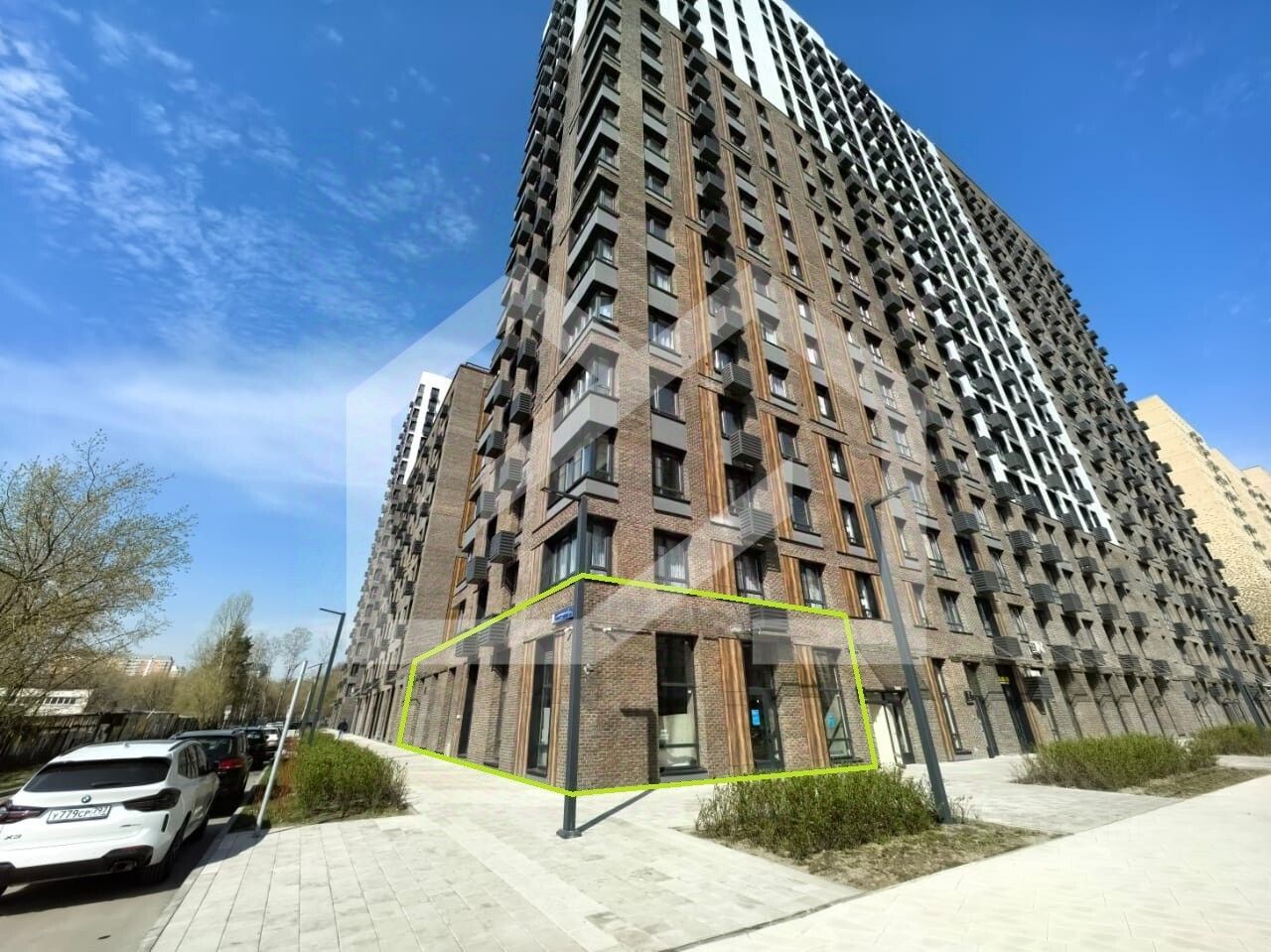 -напротив помещения парковка и автомобильный въезд в ЖК;