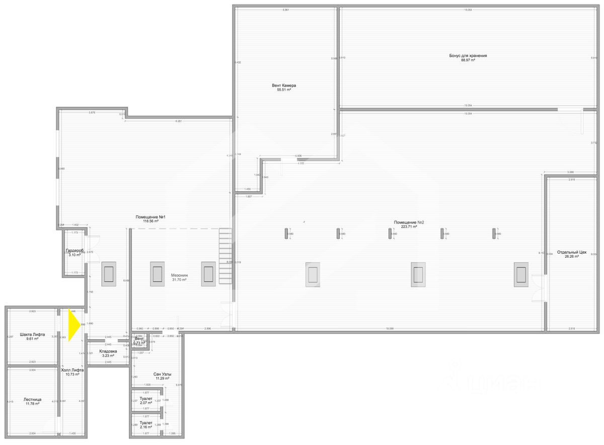 -электрическая мощность: 30 кВт (3 фазы) + возможность добавить 80 кВт, подключившись к ТП здания.