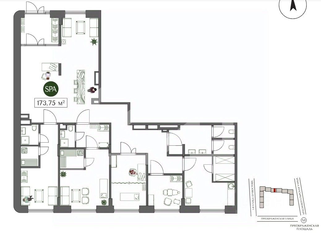 743887. Предлагаем помещение свободного назначения, площадью 176,4 кв. м, расположенное на первом этаже жилого дома в ЖК "Преображенская площадь". Без комиссии для покупателя.