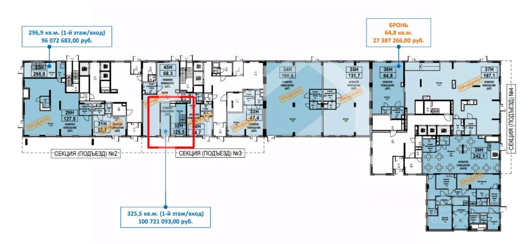 948126. Предлагаем помещение свободного назначения в ЖК "Сиреневый парк", площадью 325.5 кв. м, расположенное на втором этаже 25-этажного жилого дома. Корпус К3. Без комиссии для покупателя.