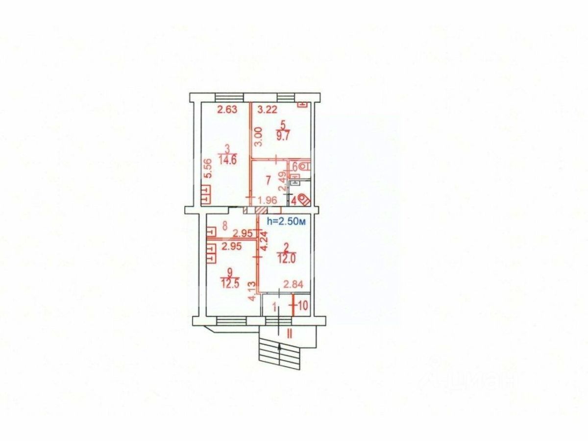 -высота потолков: 2.55 м.