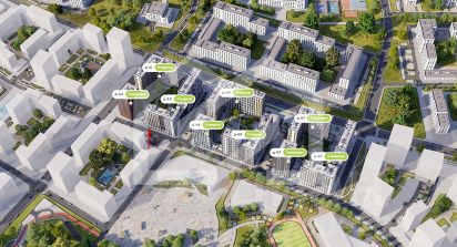 -в проекте планируется 2 151 квартира в рамках первой очереди строительства. Это масштабный проект, который будет состоять из десятков корпусов, объединенных в 3 тематических квартала;