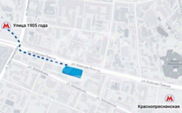 -5 минут пешком от станции метро Улица 1905 года;