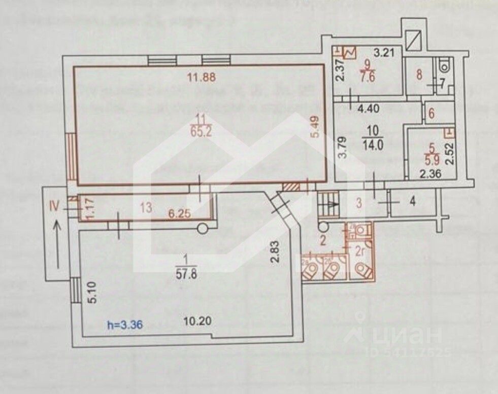 -высота потолков: 3 м.