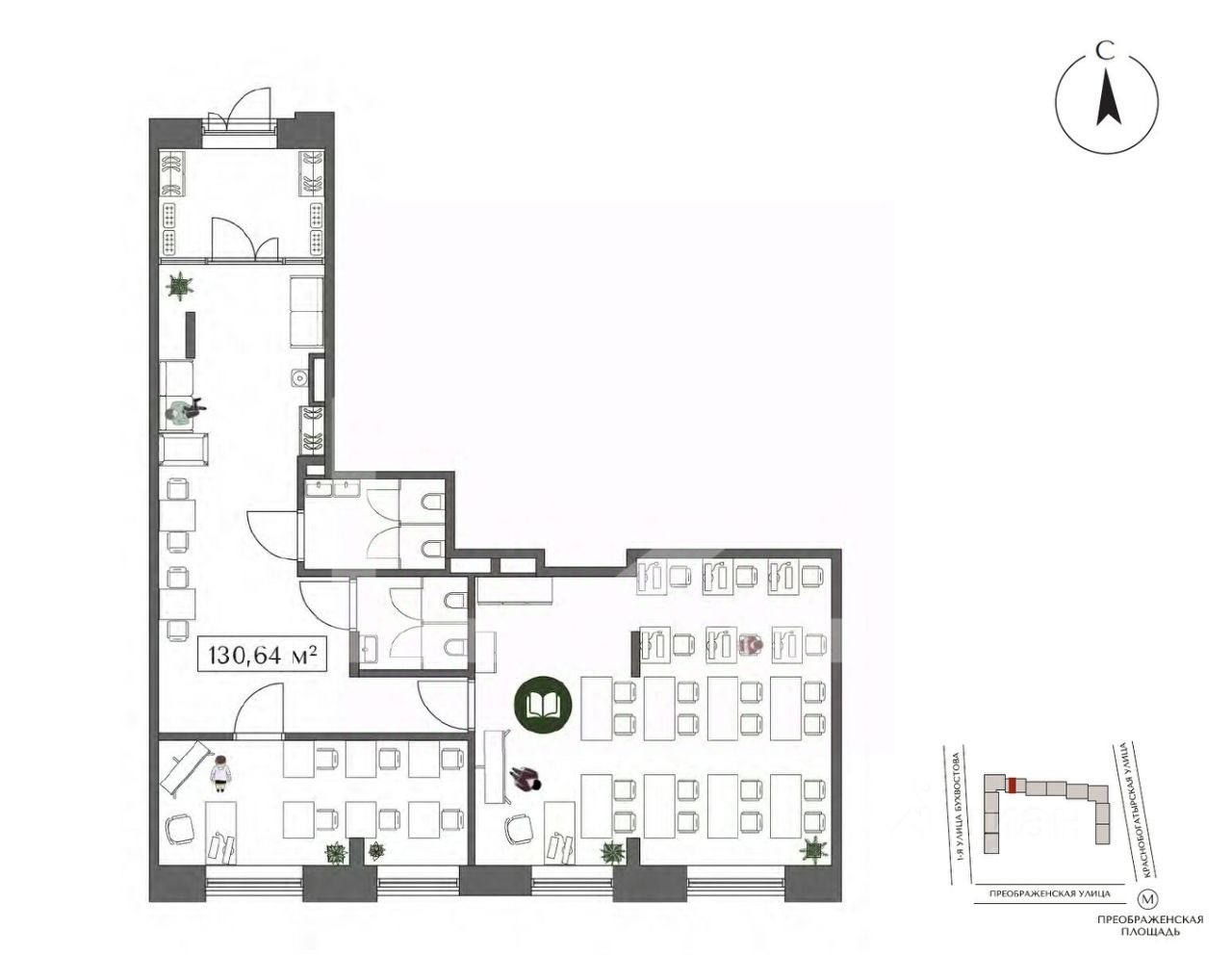 743350. Предлагаем помещение свободного назначения, площадью 132,1 кв. м, расположенное на первом этаже жилого дома в ЖК "Преображенская площадь". Без комиссии для покупателя.
