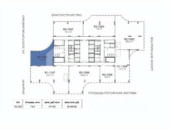 809742. Предлагаем офисное помещение площадью 115,4 кв. м, расположенное на 12 этаже строящегося БЦ "Stone Римская"
