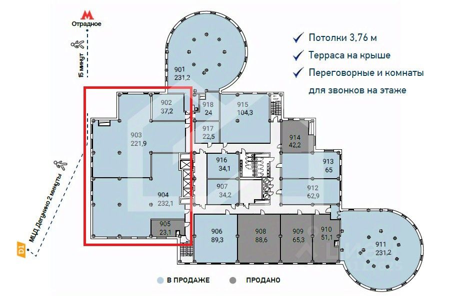 1047538. Предлагаем офисное помещение площадью 491,2 кв. м, расположенное на 9 этаже в бизнес-центре "Гало"