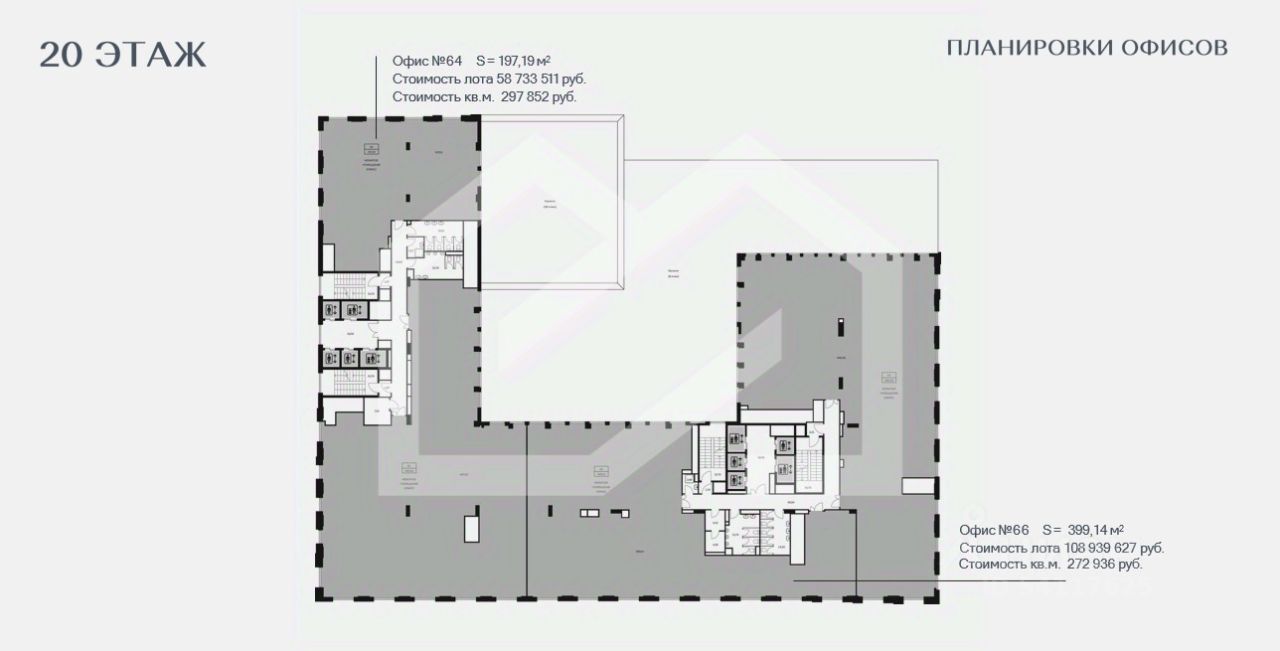948421. Предлагаем офисное помещение площадью 399,14 кв. м, расположенное на 20 этаже в многофункциональном офисно-торговом центре в рамках жилого комплекса "Сиреневый парк".