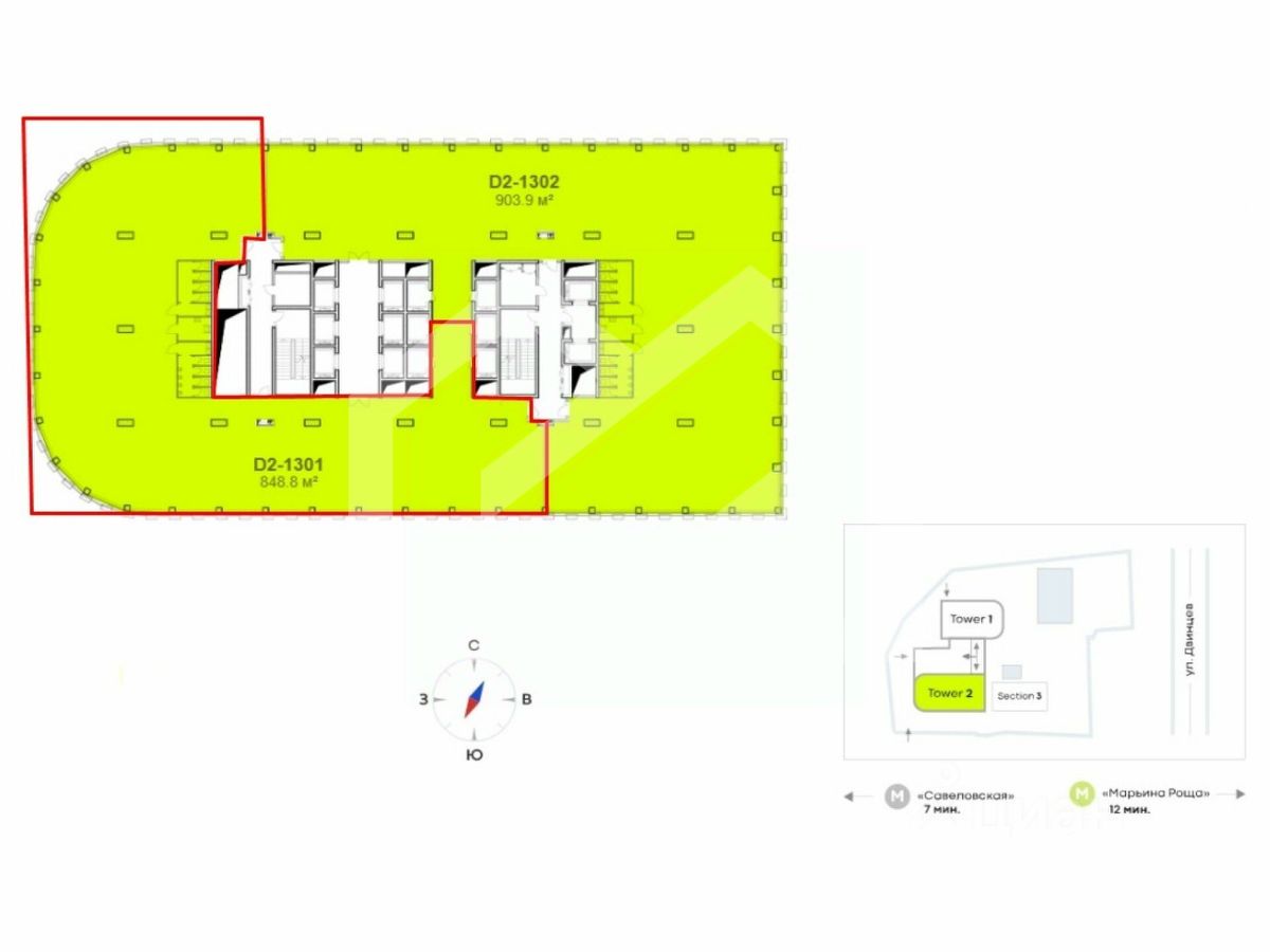 644721. Предлагаем офисное помещение площадью 848,5 кв. м, расположенное на 13 этаже в строящемся бизнес-центре "STONE Савеловская"