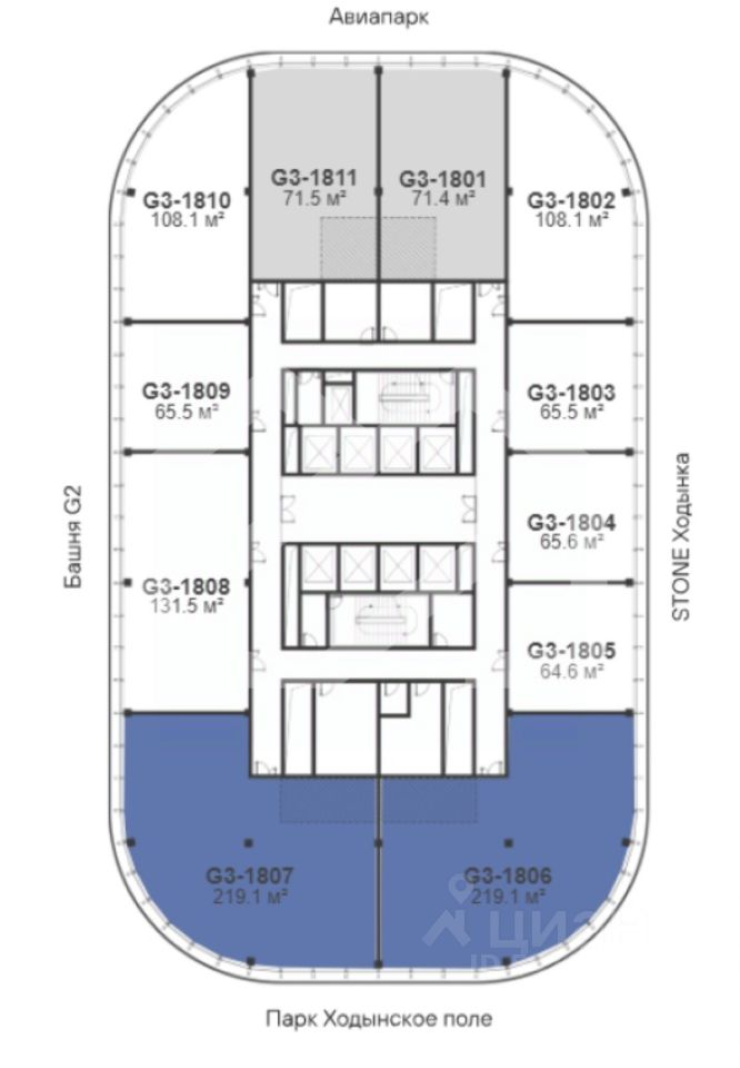 839113. Предлагаем офисное помещение площадью 217,1 кв. м, расположенное на 18 этаже строящегося БЦ "Stone Ходынка-2"