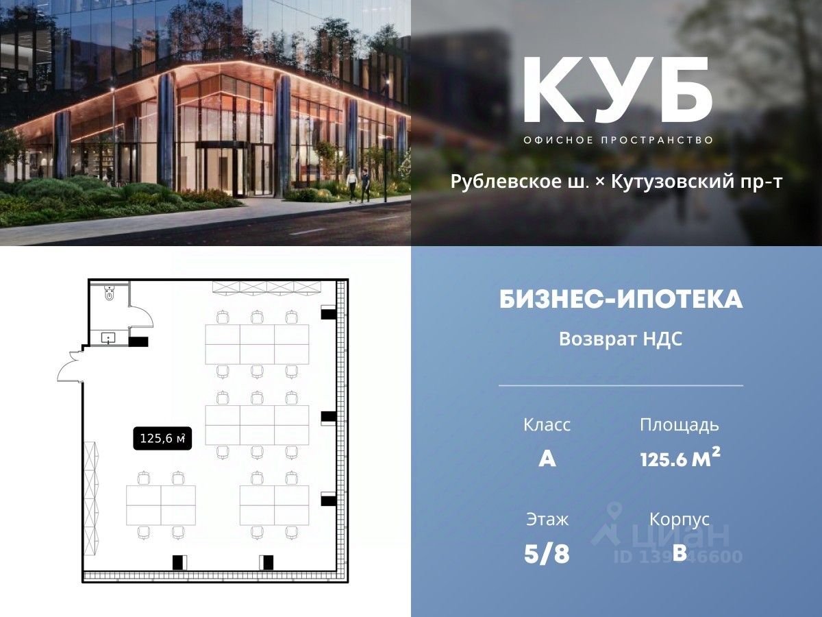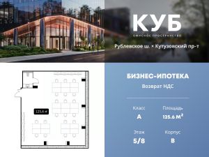 Продается офисное помещение площадью 125.6 м² в бизнес-центре КУБ класса "А" от застройщика Доминанта.