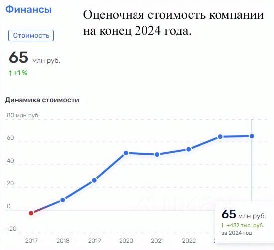Оценочная стоимость компании 65 млн.рублей на конец 2024 года. Приобретая готовый бизнес, вы экономите 4-6 лет работы и минимизируете риски.
