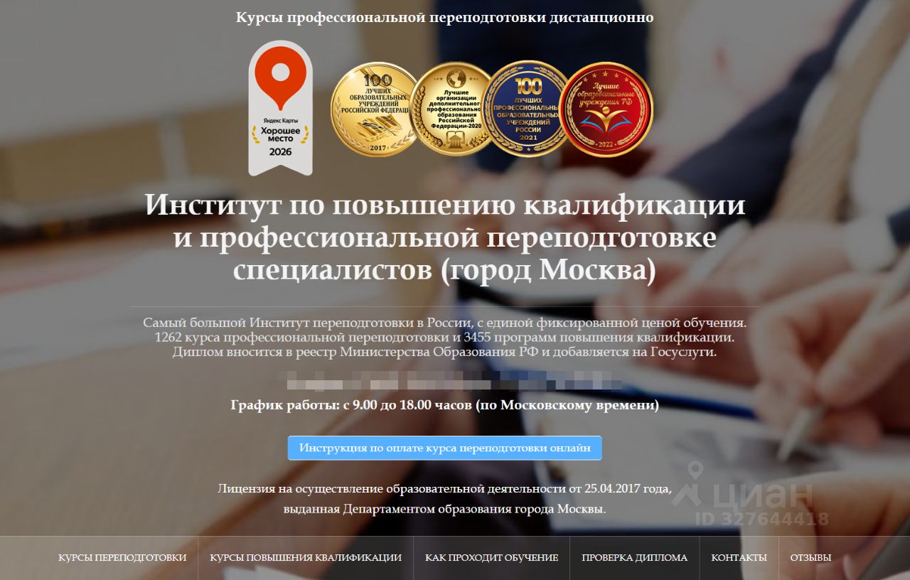Успешный образовательный проект с 9-летней историей развития ждет своего нового владельца. Институт повышения квалификации и профессиональной переподготовки - это готовый бизнес с отлаженными процессами и стабильным потоком клиентов (вся Россия и 52 страны мира). Компания основана в 2017 году (9 лет на рынке). Имеет бессрочную образовательную лицензию Департамента образования Москвы, награды и 1-е места в отраслевых рейтингах, награда "Хорошее место 2026".