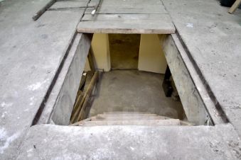 Подвал разделен перегородкой.