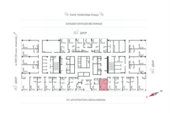 Помещение 21,4 м² с выделенной зоной с/у, без отделки, расположено в 4 Корпусе, окна выходят на улицу Архитектора Мельникова.