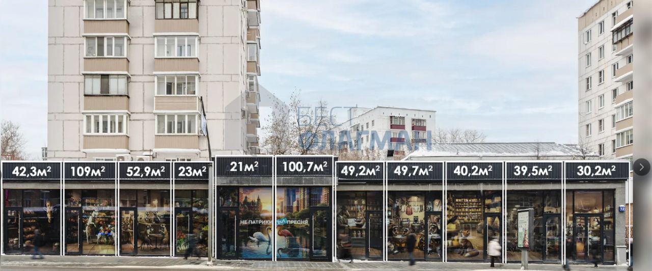 Арт. 132604255 Предлагается торговое помещение на первой фасадной линии с отличной видимостью и высоким трафиком. Локация с активным туристическим и местным потоком (пешеходным и автомобильным). В непосредственной близости расположены знаковые объекты: Московский зоопарк, Планетарий, сталинская высотка на Кудринской, Кафедральный собор, "Центр Зотов" и другие популярные места, три станции метро: "Краснопресненская", "Баррикадная" и "Улица 1905 года". Красная Пресня — важная городская магистраль с плотным пешеходным и автомобильным трафиком и развитой инфраструктурой. Улица плавно переходит в Звенигородское шоссе, связывая центр города с западными районами и обеспечивая удобную транспортную доступность.