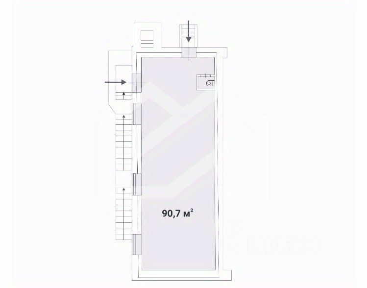 945009. Предлагаем к приобретению торговое помещение, площадью 90.7 кв. м, расположенное на первом этаже жилого дома. Без комиссии для покупателя.