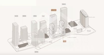 -ЖК состоит из 5 корпусов переменной этажности (от 26 до 33 этажей), рассчитанных на 1 313 квартир;